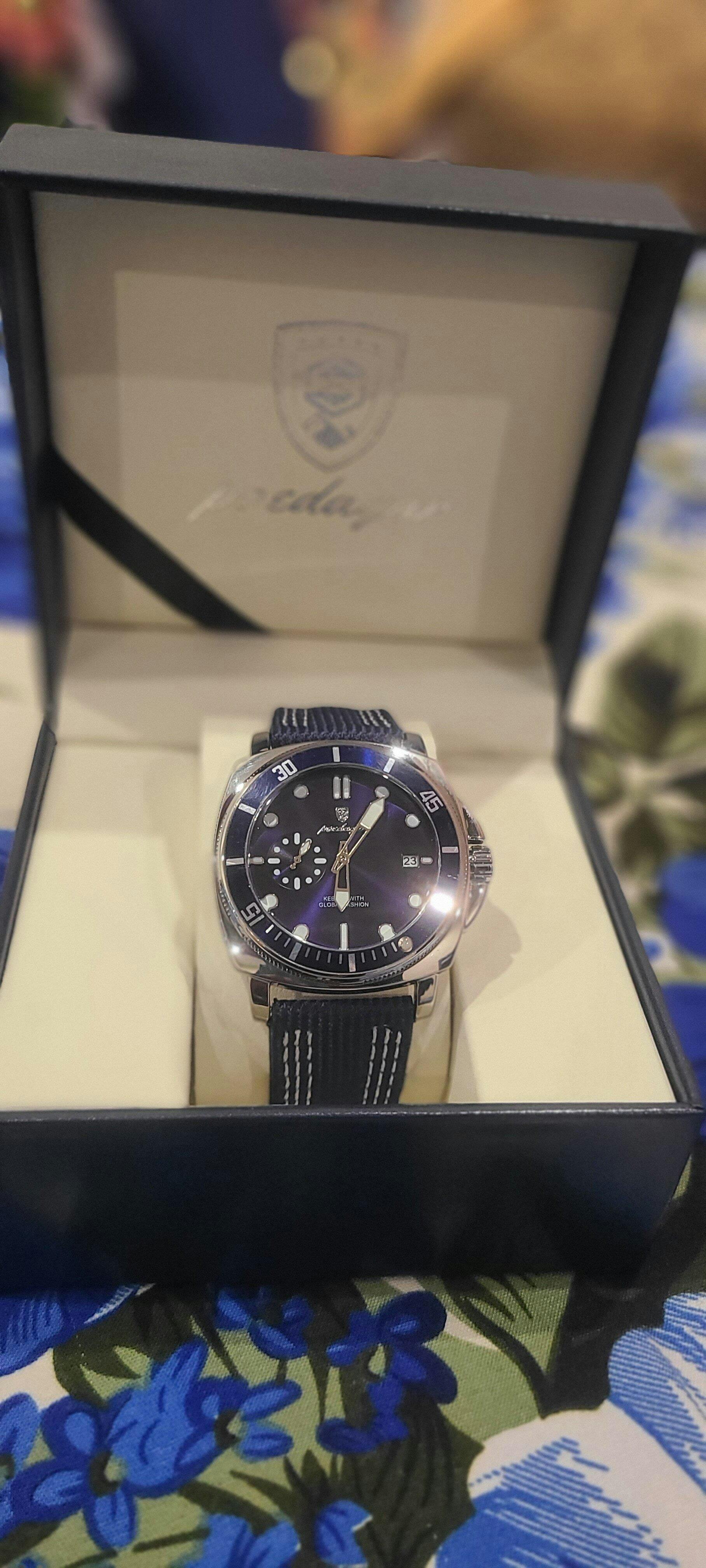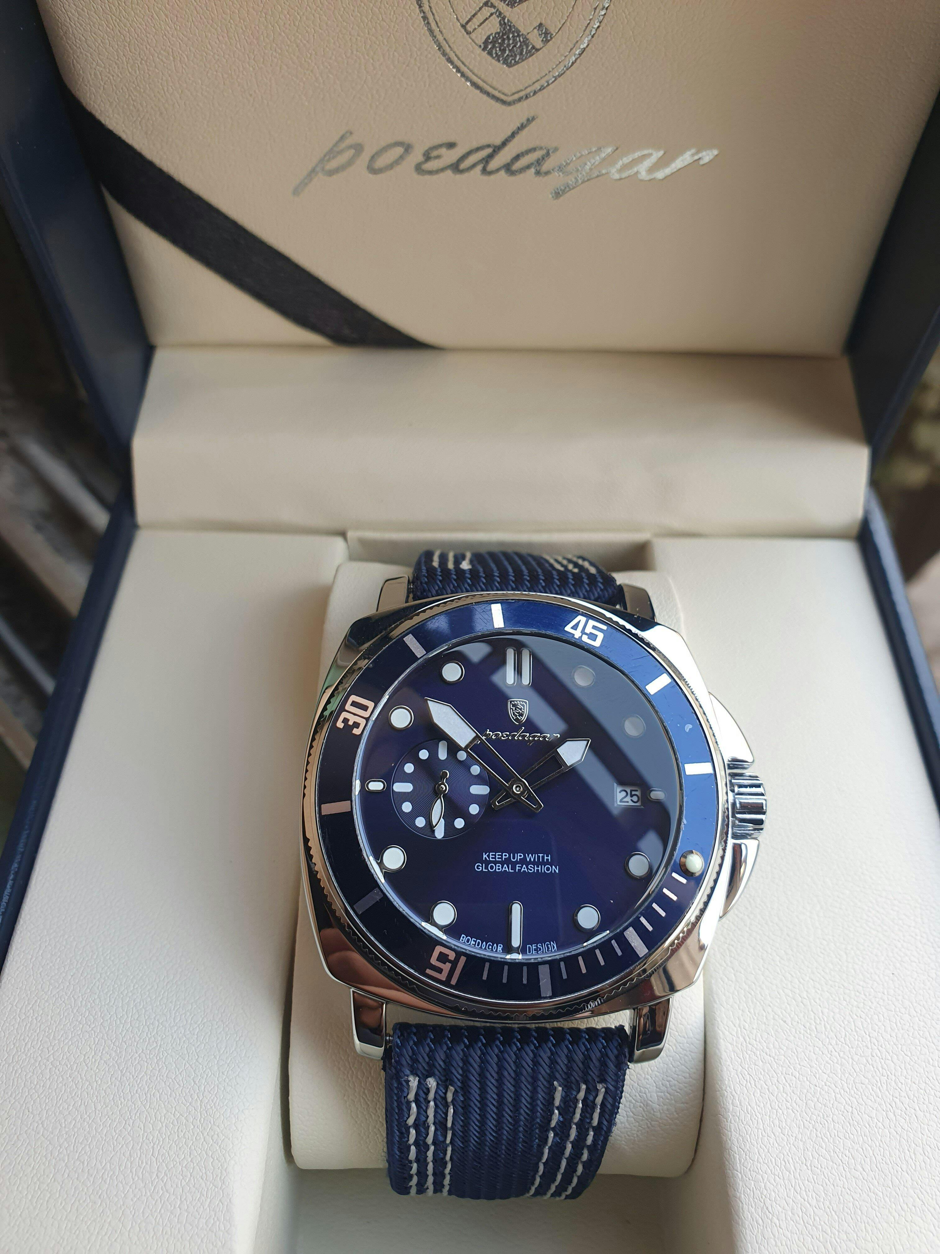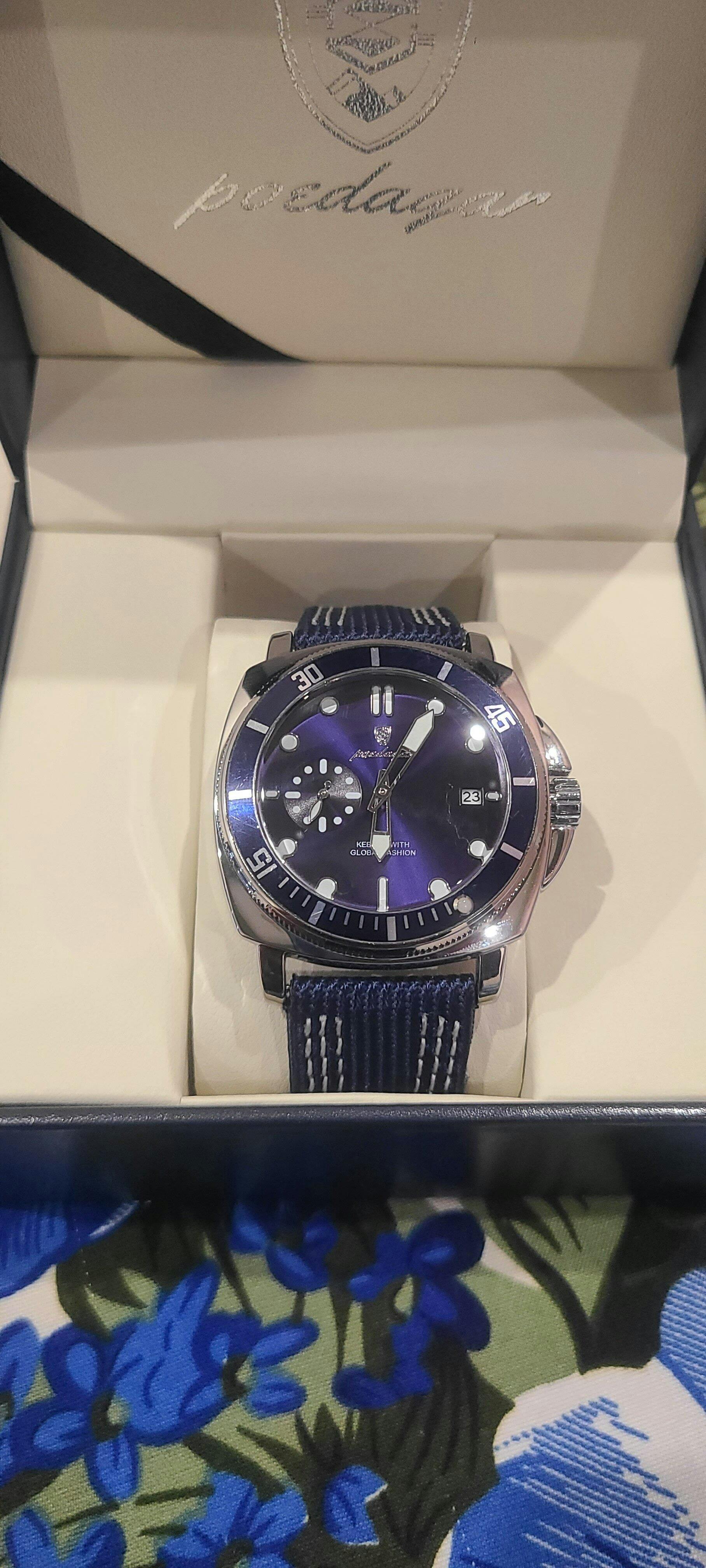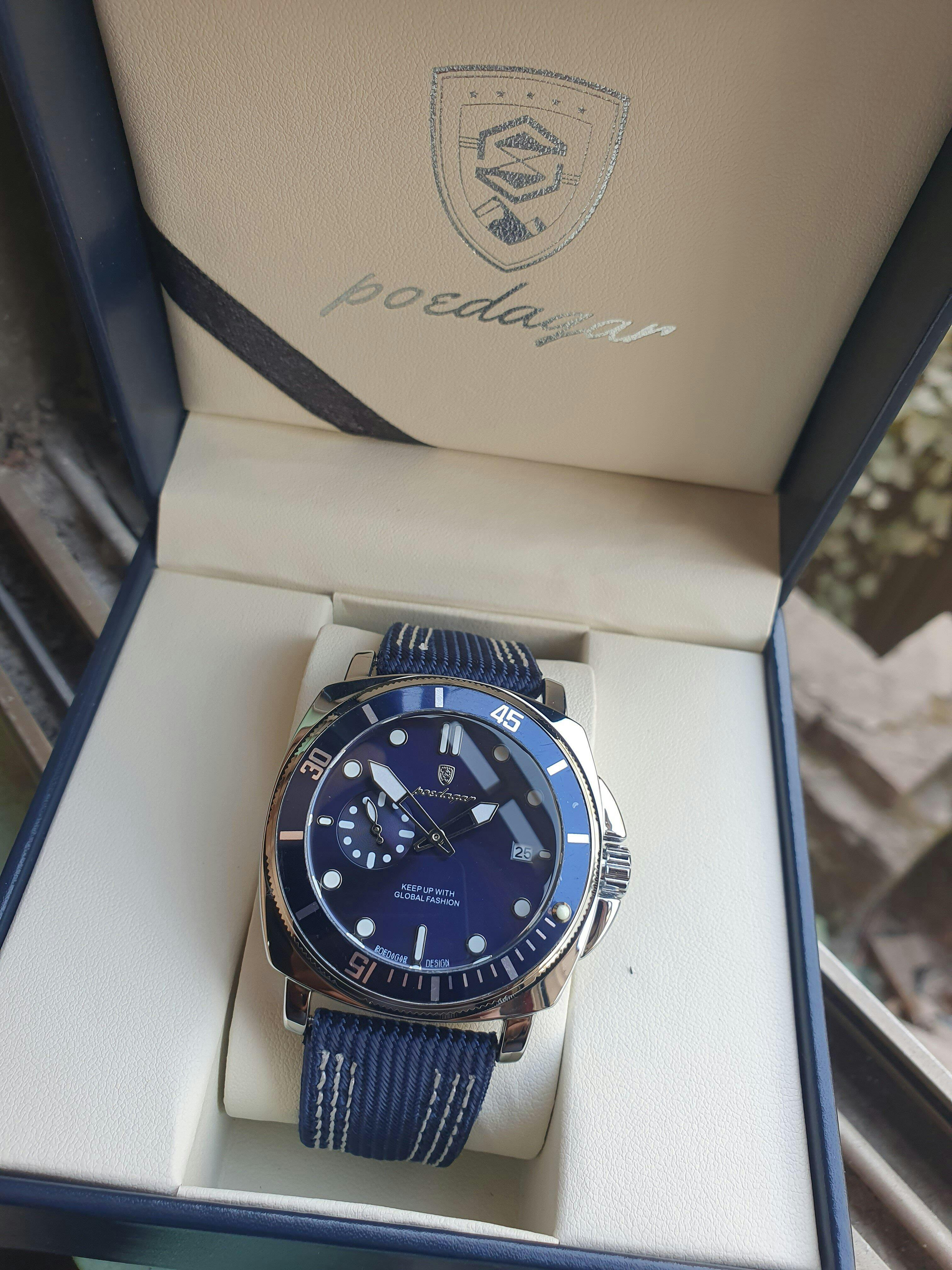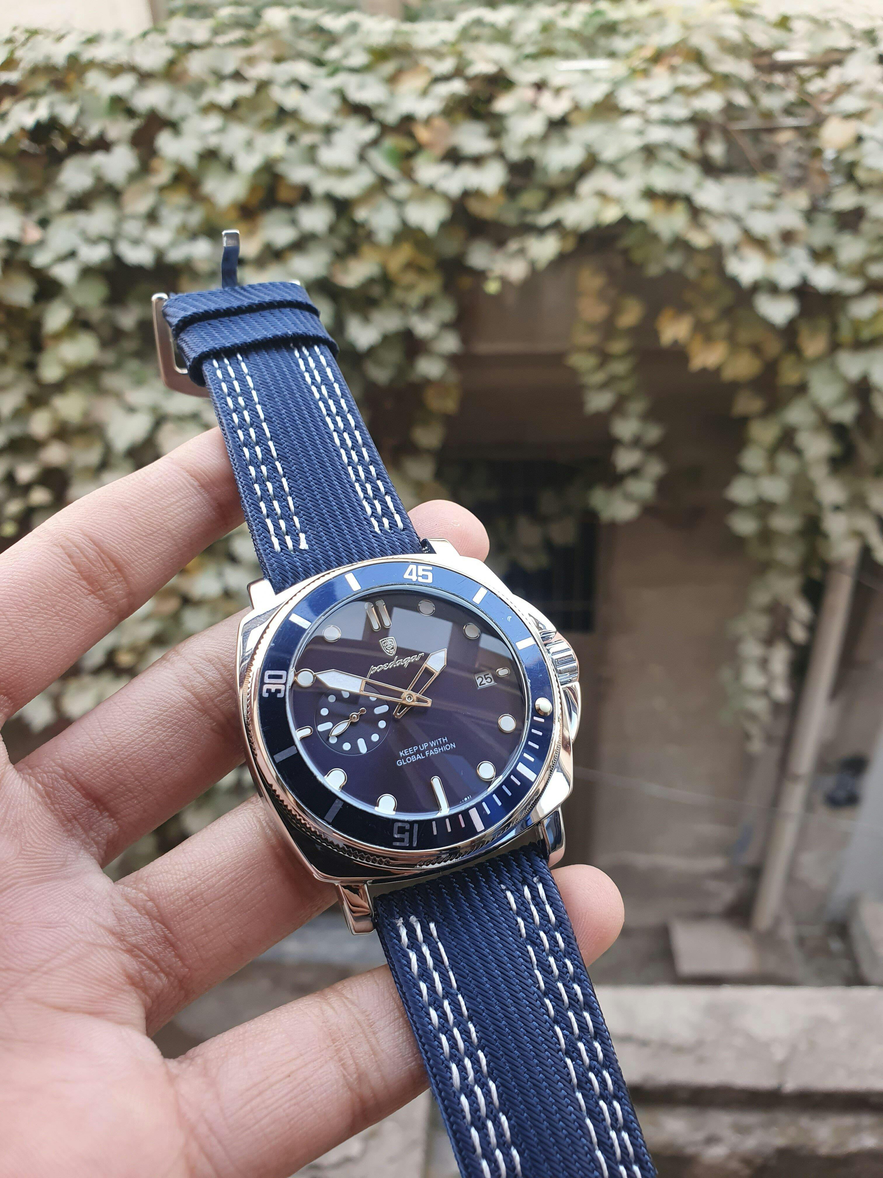 The striking blue dial paired with a refined leather strap delivers a look that is both bold and sophisticated. Perfect for business meetings, casual outings, or evening events